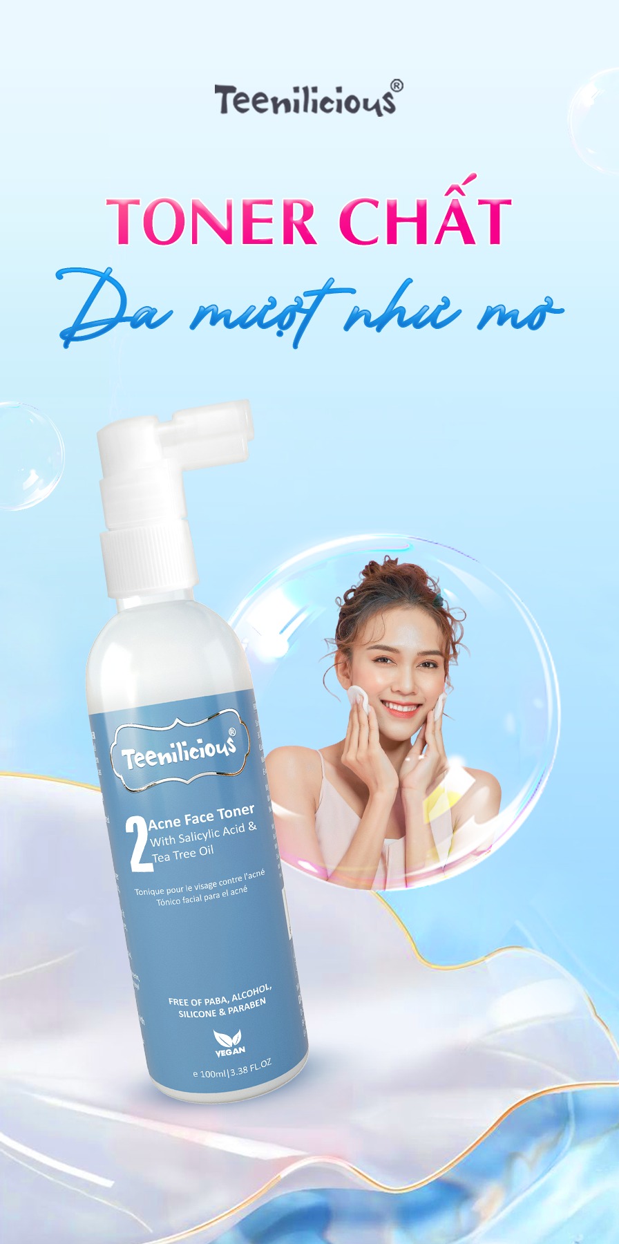 Đặc biệt với làn da dầu, dễ nổi mụn – vốn cần được chăm sóc nhẹ nhàng nhưng hiệu quả – việc lựa chọn một loại toner phù hợp có thể góp phần đáng kể trong việc làm sạch sâu, hỗ trợ kiểm soát dầu nhờn và làm dịu các nốt mụn. Đây cũng là lý do vì sao Teenilicious Acne Face Toner được phát triển, nhằm mang lại giải pháp chăm sóc tối ưu cho làn da tuổi teen nhạy cảm.