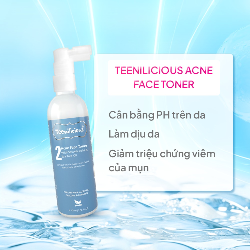 - Teenilicious Acne Face Toner: Cân bằng, làm dịu và hỗ trợ chăm sóc da mụn.